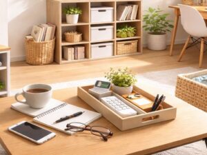 たとえば、玄関に小さなカゴを置いて郵便物の一時置き場にする、デスクの一角を“今日の書類スペース”として決めるなど、限定された場所を作ります。