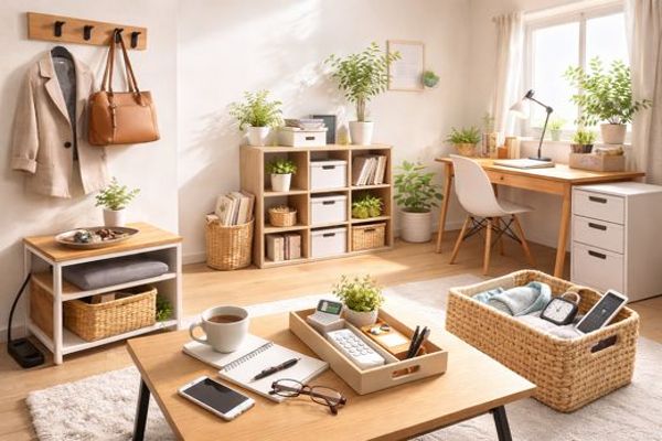 ポイントは、動作をできるだけ少なくすること。たとえば、バッグはフックに掛けるだけにする、鍵は玄関近くのトレーに置くだけにするなど、ワンアクションで完了する形が理想です。