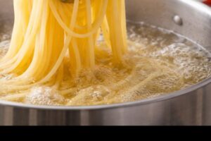 沸騰が弱いとパスタが停滞。中火〜強火で軽い沸騰を維持しましょう。
